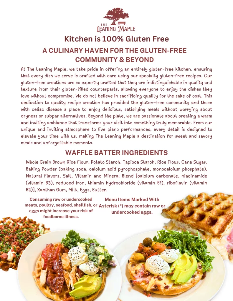 Explore our 100% gluten free breakfast and brunch menu! Check back often for seasonal additions.ย